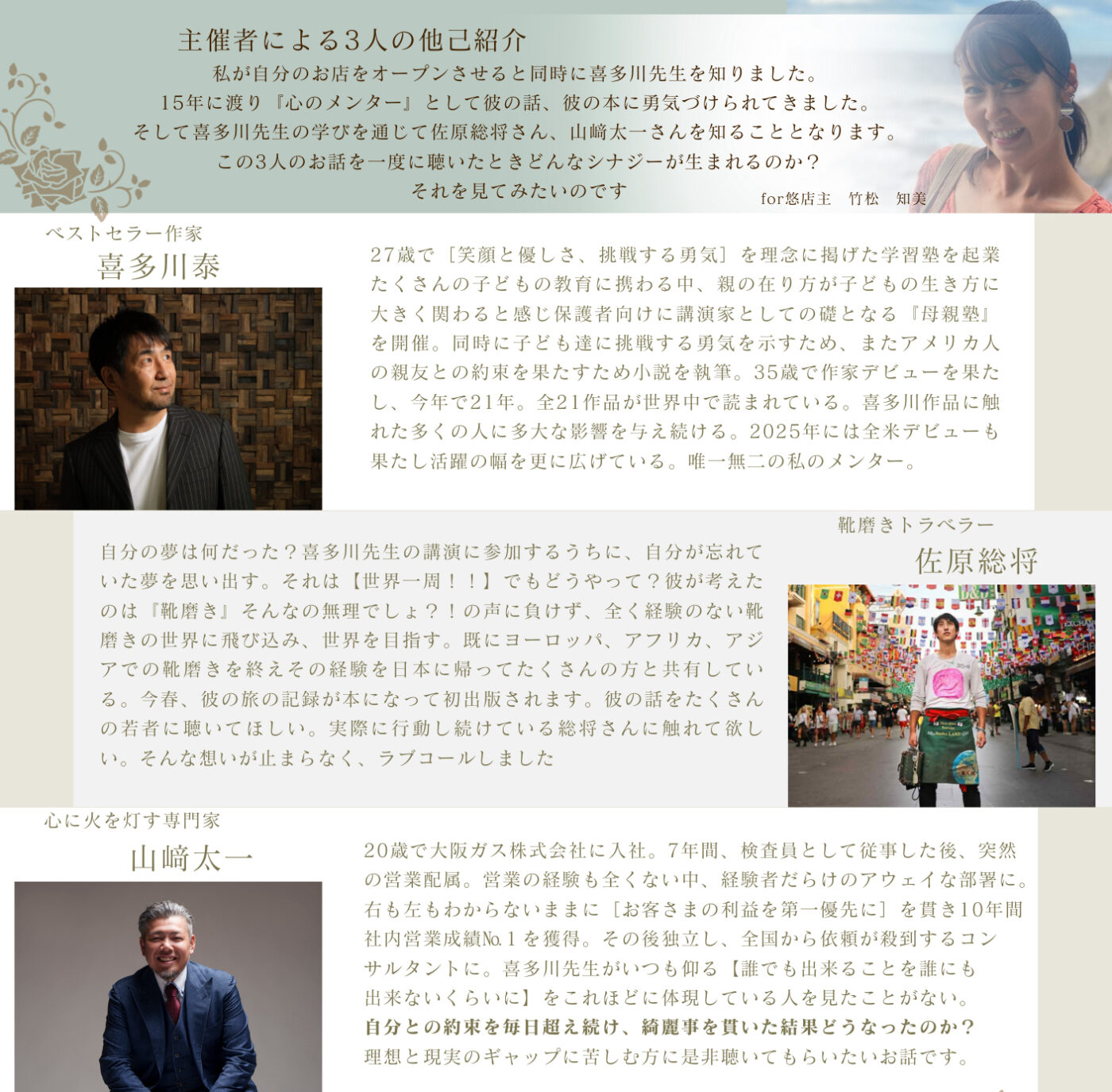 講演者:喜多川泰・佐原総将・山﨑太一